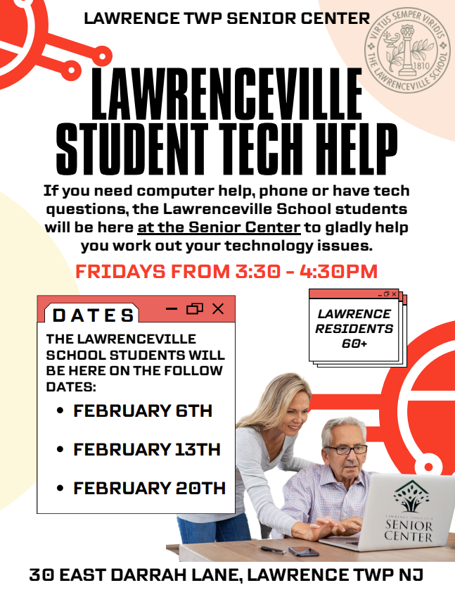 Call the Lawrence Senior Center at (609) 844-7048 to register for programs.