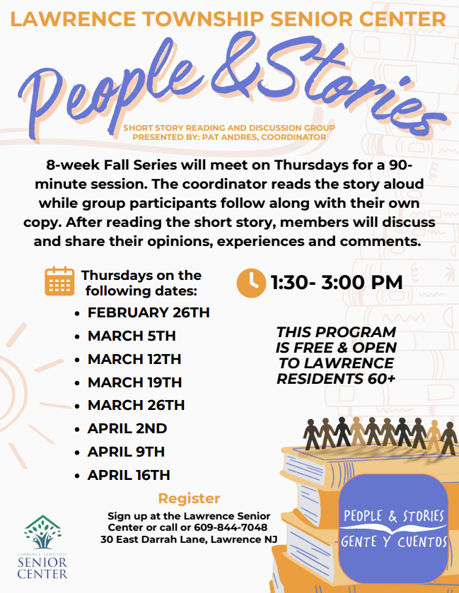Call the Lawrence Senior Center at (609) 844-7048 to register for programs.