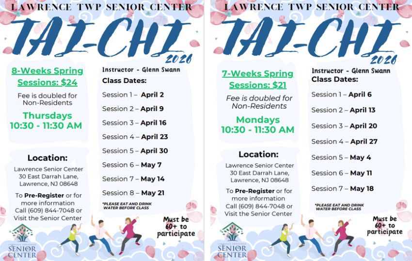 Call the Lawrence Senior Center at (609) 844-7048 to register for programs.